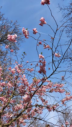 Cherry blossoms on my way home from work. There's still beauty in this world (well hidden and rare, but still).