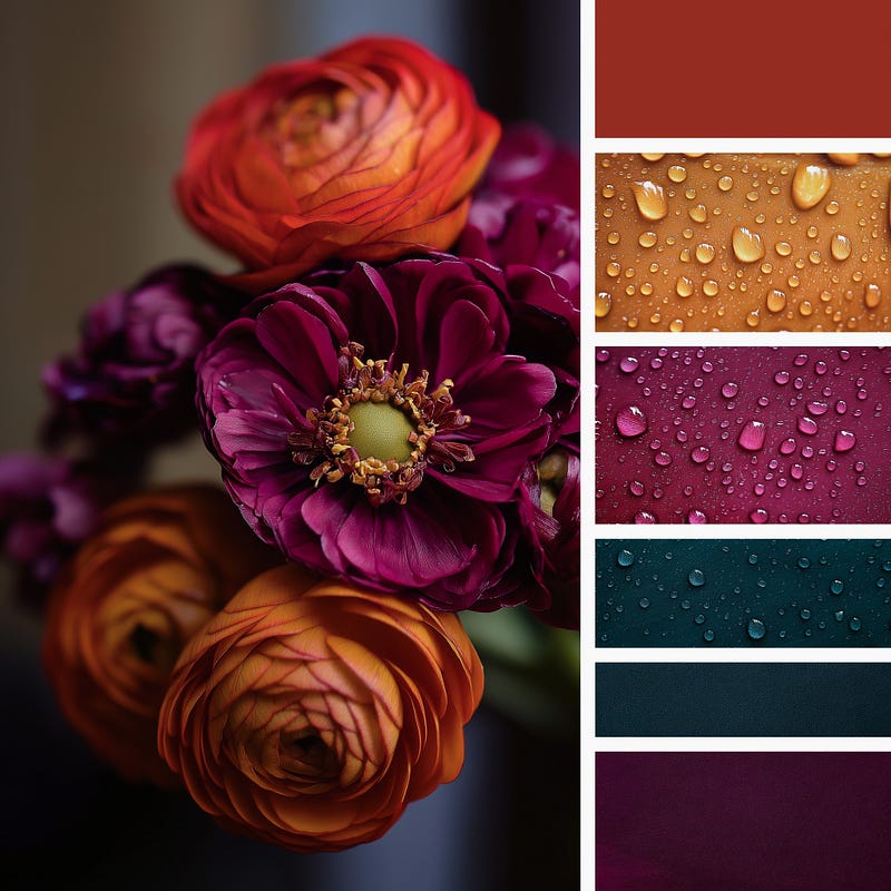 We pitched a darker floral story once. Rich reds, deep teal, saturated tones.
