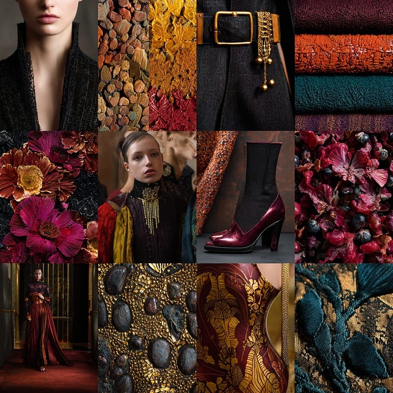 Clay. Wine. Ochre. Deep green.