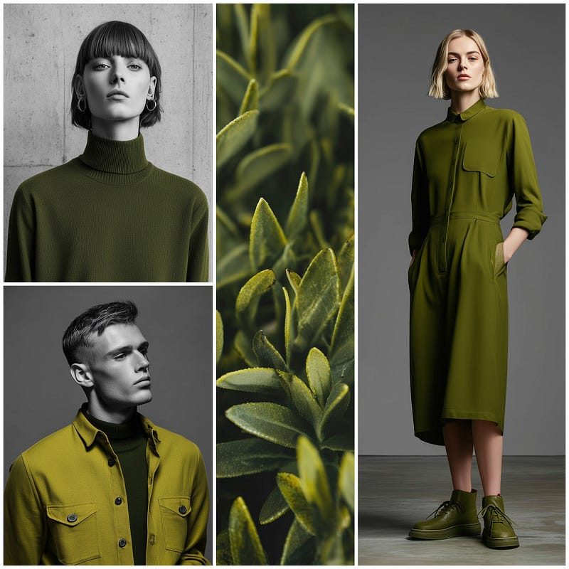 Deep olive → moss → acid green… all in one story.