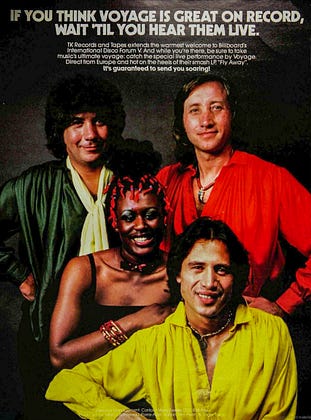 The funny thing about this ad is that Voyage, one of the top Eurodisco acts of the late seventies, wasn’t exactly a well-known band outside the dancefloor.