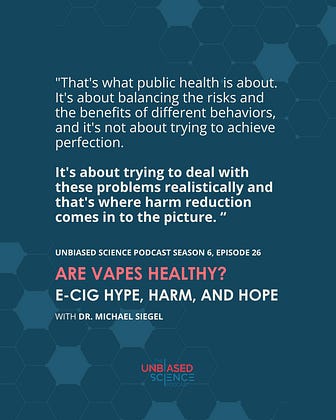 Dr. Michael Siegel, a public health expert specializing in tobacco control, joined us this week on the pod to examine the complex landscape of e-cigarettes and harm reduction strategies.