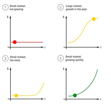 → But if you find that small, fast-growing market? That’s your golden ticket. It’s where startups thrive, incumbents snooze, and opportunities feel endless.