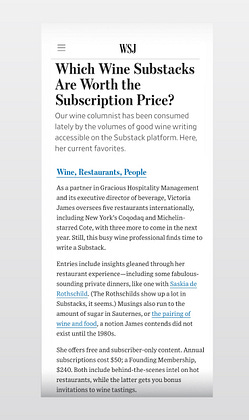 Thank you to the WALL ST JOURNAL for recommending ‘Wine, Restaurants, People’ !