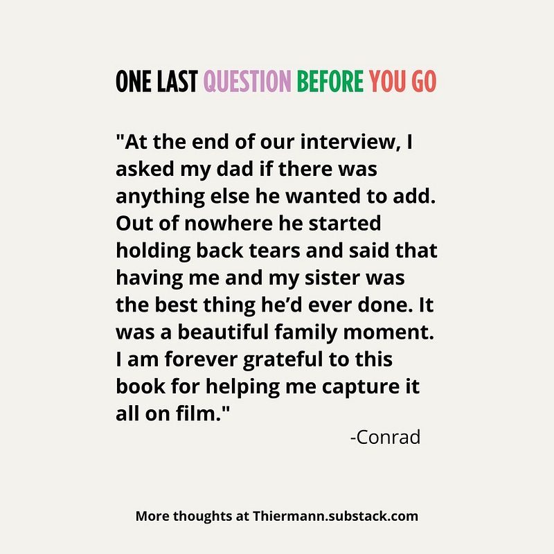 Reader testimonials from “One Last Question Before You Go”
