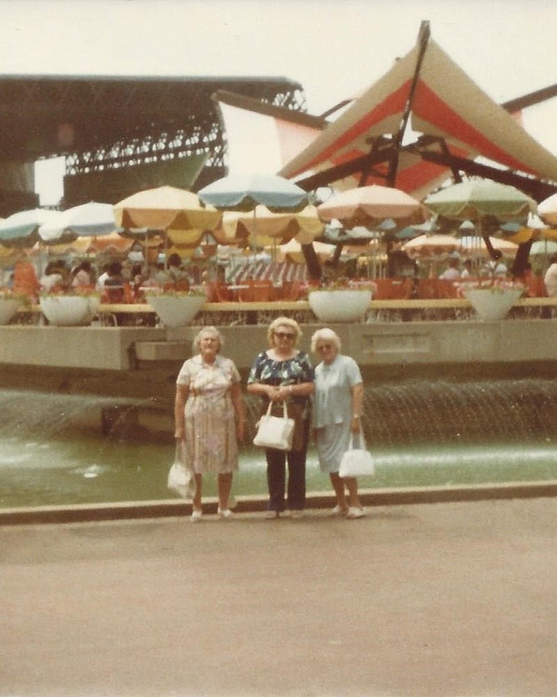 In July 1981, my grandmom brought 15-year-old me along on a four-day chartered bus trip to Montreal with her sister, Martha, and Martha’s friend, Mary. Here’s my traveling companions standing outside the Expo 67 pavilion.
