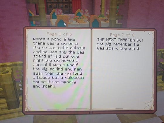 My son wrote a story in a Minecraft book today and I think it's my favourite story of all time