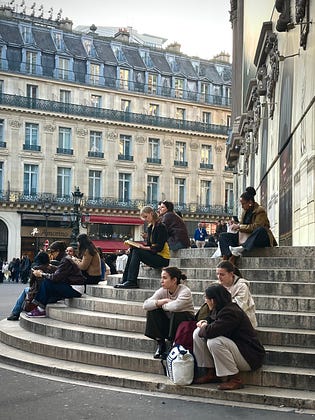 Hanging on the stoop at Opéra. Paris, March 2026.