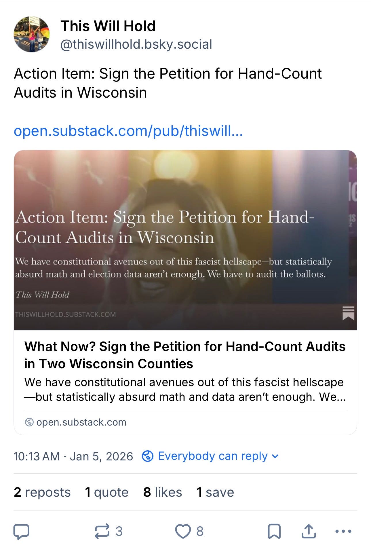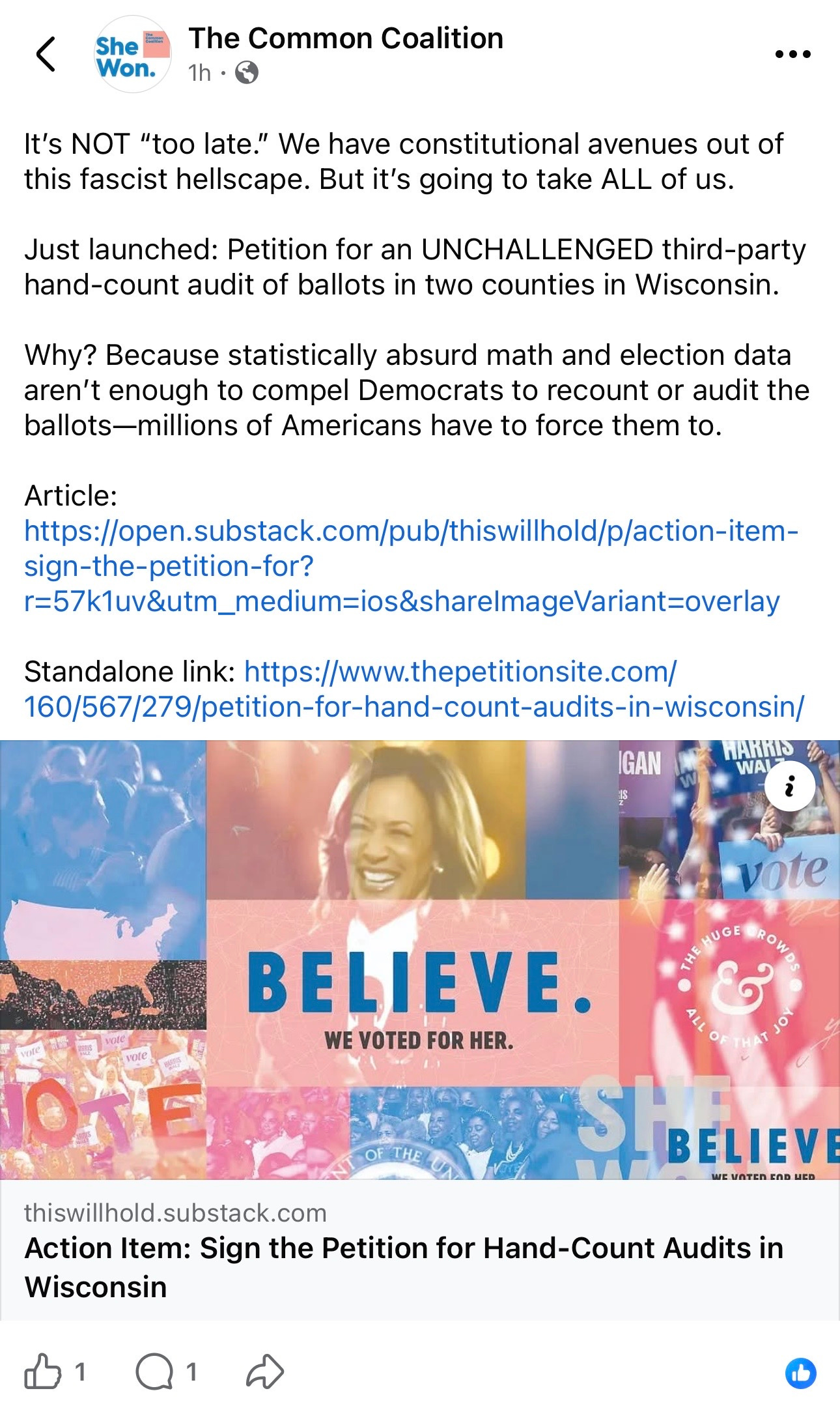 Substack is where it’s at. Please spread this Wisconsin petition link far and wide: