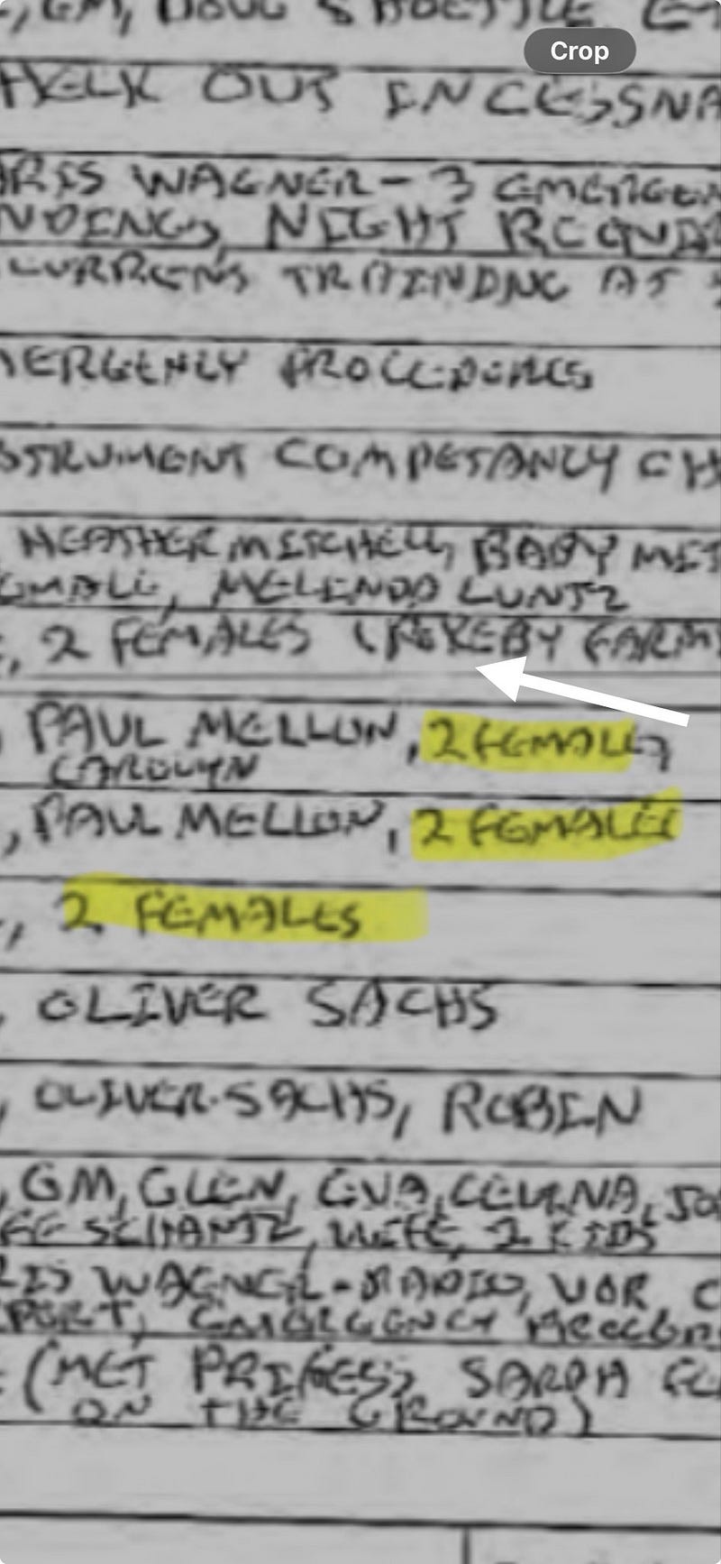 Sascha’s audio statements describe abuse that occurred at “farm parties” in agonizing detail—note the Epstein flight log entry listing “2 females (Rokeby Farms)” as passengers.