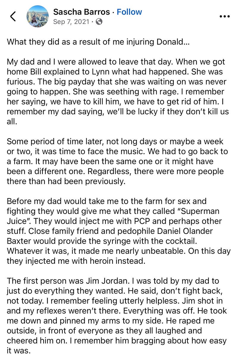 This is the story of Sascha Reilly, a victim of the Epstein-Trump trafficking ring. His account of events is both gruesome and horrifying.