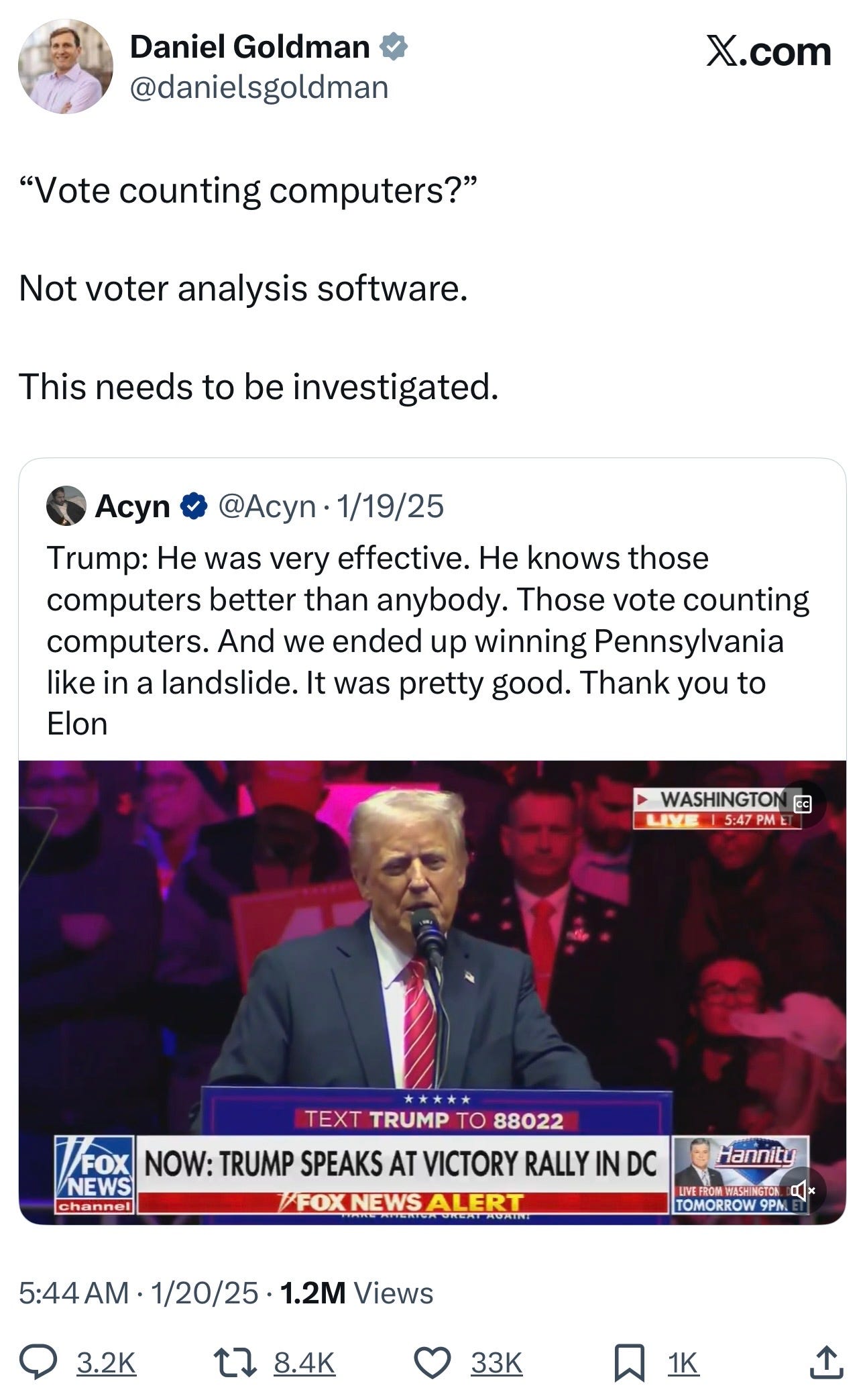 🚨Does anyone know what became of this “investigation” into those “vote counting computers”? It doesn’t look like Rep Goldman is on Substack.