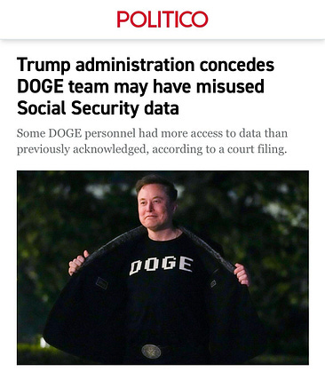 🚨Breaking: Two of Musk’s DOGE staffers “were secretly in touch with an advocacy group seeking to ‘overturn election results in certain states,’ and one signed an agreement that may have involved using Social Security data to match state voter rolls.”
