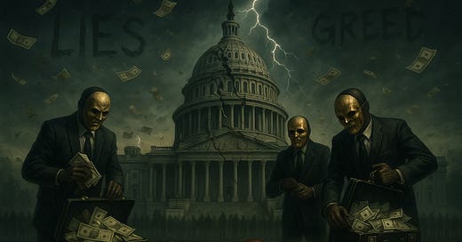 The morbidly rich hide behind patriotism, drown us in lies, and strip the nation bare while we’re told to blame our neighbors...