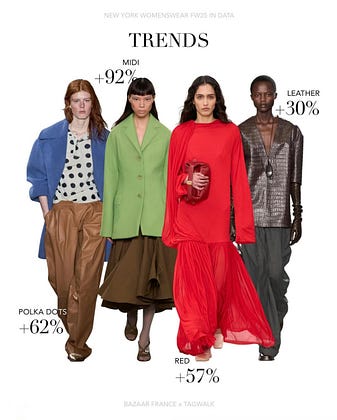 As we just saw in the Fendi show, midis are taking over with a 92% increase in this length compared to the prior season