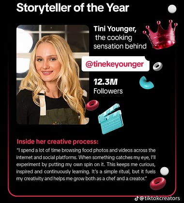 Tini’s cooking has always been about more than just recipes. It’s about the stories behind the food, the moments it creates, and making cooking feel approachable and real. Seeing that recognized on this level is incredibly meaningful. We’re beyond proud of Tini and the work she’s put into earning this recognition, and so very thankful for the community that continues to show up and support her. To everyone who’s cooked along, shared a video, sent a message, or been part of the journey in any way... thank you for making this possible. There's so much more to come...
