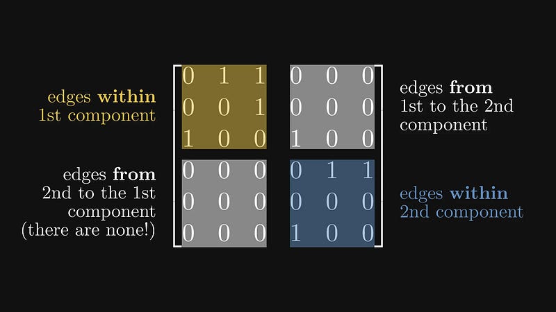 Even though not all directed graphs are strongly connected, we can partition the nodes into strongly connected components.