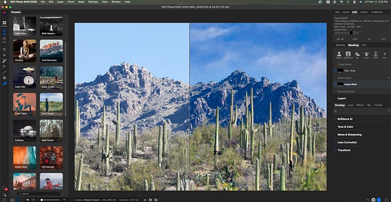 Hmmmm. I don’t know if I want to learn a whole new software. But the economics of it makes sense, even though I would do the On1 subscription with 1TB of cloud storage. The Veteran price is only $89.99 a year (so less than Adobe). Plus, it appears that On1 has more capabilities with layers and effects.