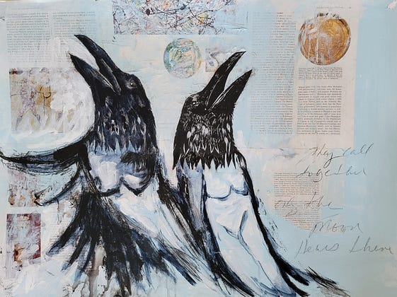 I was having a hard time deciding which crow(s) to share today. This one was on the short list because it is a week with a full moon.