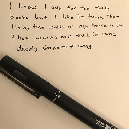 The new boyfriend of a good pal of mine was telling me today that his dad, who died recently, left him 30,000 books and he's now "wondering what to do with them". I am being very strong right now but I don't know how long it will last.
