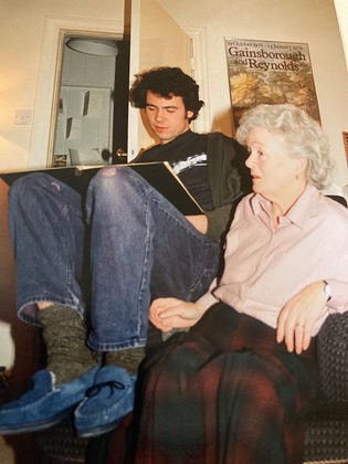 I worked f***ing hard on the writing of this piece & just as hard on the editing but I feel it was worth it. It’s about my life in 1995 (photo is of me with my nan in December that year; the t-shirt is from a gig by Kim Deal's lo-fi post-Breeders band The Amps… I can’t remember where the slippers came from but probably the Nottingham factory seconds shop where I got pretty much all my clothes around that time), my recent autoimmune diagnosis, transport, time, a great Norwegian film and many other things. I hope 2 or 3 of you might get a moment to read it.