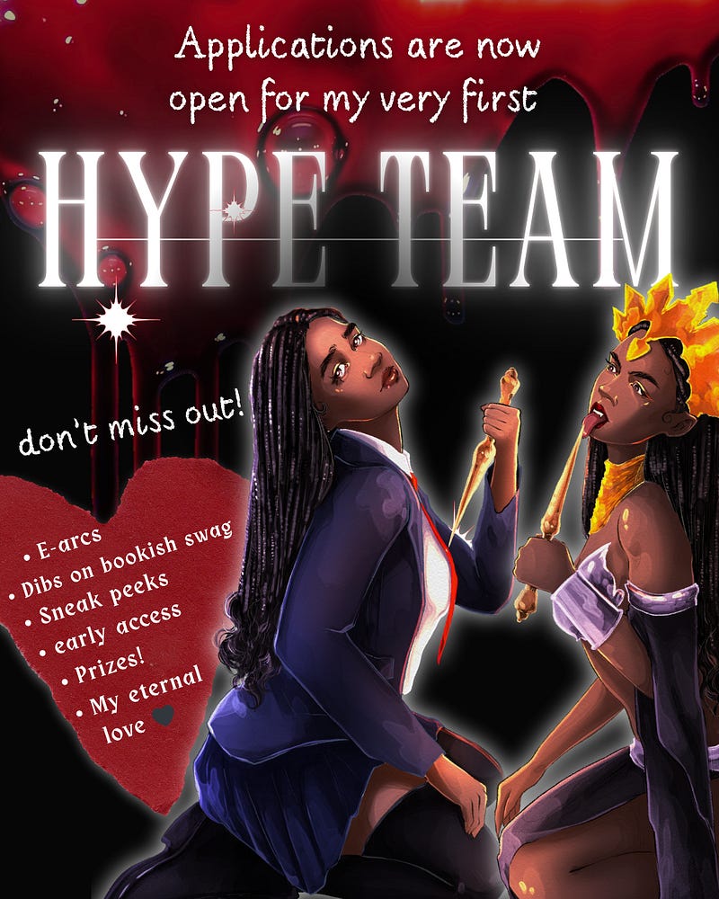 If you’re a fan of horror stories that don’t center white fragility, but instead have dark academia vibes, all Black casts, and death cults with a mission you could probably get behind, then this hype team is for you! All the details are in the form but if you have any questions please feel free to DM me ❤️