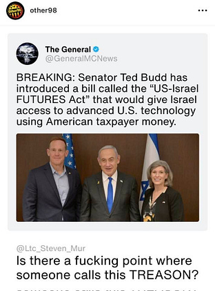 netanyahu is paying senators off with the money that our government has given them.
