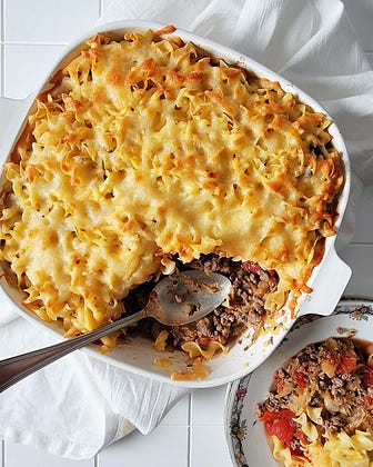 It's a good time for sauerkraut casserole: honest-food.net/sauerkr… Super Midwestern German comfort food, it's ground meat (venison here), sauerkraut, some whole canned tomatoes, lots of egg noodles and cheese. It's really really good, easy to make, and keeps a week in the fridge.