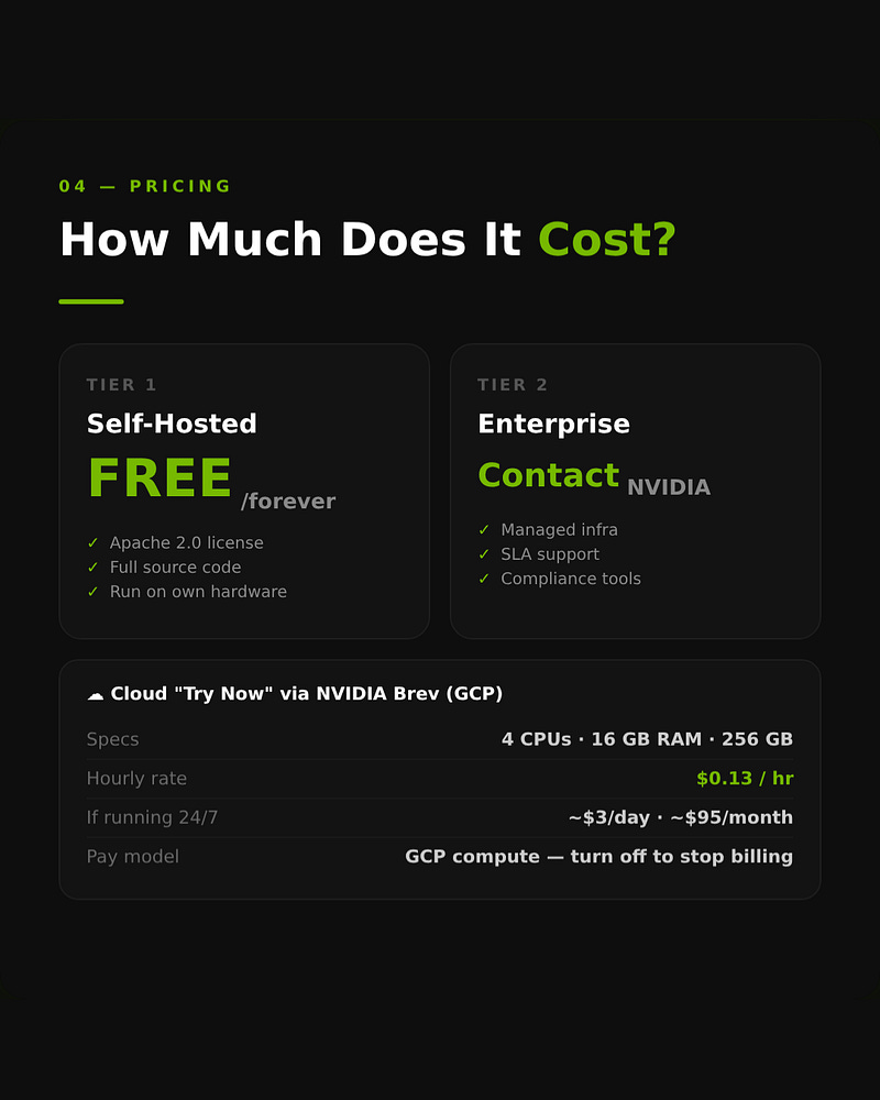 One command to set up. Apache 2.0 licensed. Free.