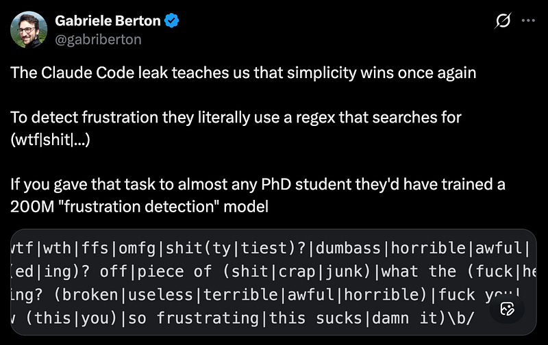 Anthropic has one of the most advanced LLMs, yet they still use regex to detect/block offensive words (per leaked source code of Claude Code). Not every problem needs to be solved with weapons-grade AI.