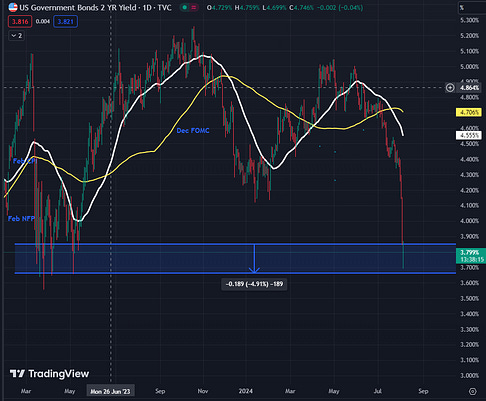 I won't chase even if the 2-year UST yield falls to 3.6%. I will wait for the short-term reversal.