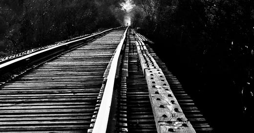 The rails are still there, but who is the man walking down the tracks?