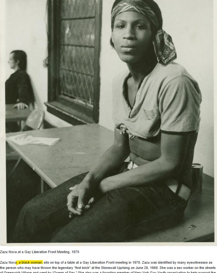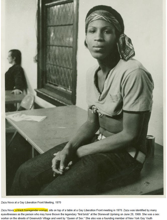 Zazu Nova’s trans identity was also erased.