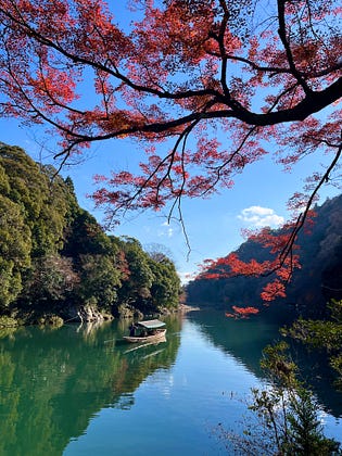 Gorgeous day at Rankyo Gorge on the Katsura River in Kyoto, Japan