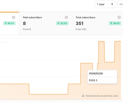 Thanks to all 351 of you, and especially to those 8 paid subs who make all the time writing and researching feel valued. 🙏 Hopefully I can celebrate passing 10 there soon. 🫶