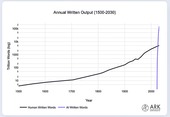 AI written output exceeded human written output in 2025.