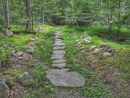 Help me out with book edits, fellow word nerds: what’s another name for these individual stepping stones on a path like this—besides “stepping stone”? (Not ‘paver,’ that’s too manicured-garden; it needs to be more like the stones of an organic path found out in the woods.)