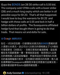 擂台的一方是知名的宏觀交易員 Andy Constan,他用一張充滿 Greek(希臘字母)和隱含波動率的截圖,宣判了 Ondas #ONDS 的死刑。他認為這家公司剛完成的融資,不過是機構用來「無風險套利」的數學遊戲。