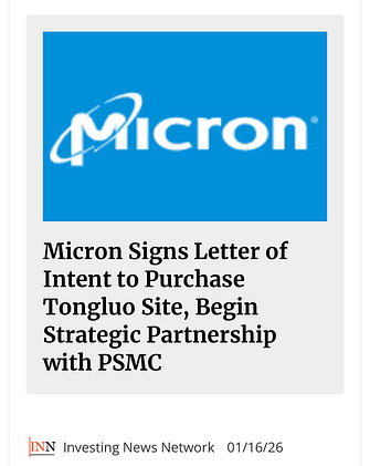 美光科技 #MU 簽署意向書,擬收購力積電位於台灣的P5晶圓廠。