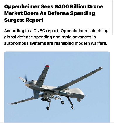 奧本海默預測全球無人機市場規模將從 450 億美元成長至 4,000 億美元。 🤯並指出 #ONDS 是參與這項市場投資的首選股票。