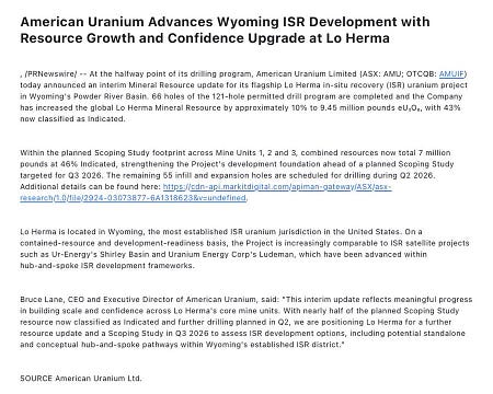 該計畫預計將於 2026 年第三季進行初步評估,是懷俄明州鈾礦區的頂級礦區之一,採用高品位原地浸出法 (ISR) 開採。
