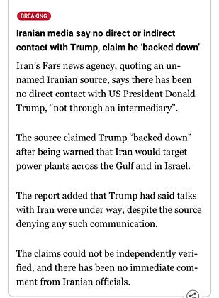 Market makes a major u-turn and spikes 1.5%+ because Trump says he won’t attack energy infrastructure for 5 days. Claims that there have been talks.