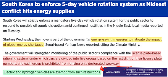 South Korea to limit access to roads by license plate numbers "due to energy crisis."