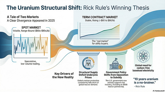 Rick Rule's core thesis was that the uranium sector had fundamentally changed. The market, once dominated by the daily fluctuations of the spot price, was now being driven by the quiet, steady negotiation of long-term supply contracts between producers and utilities. The data from 2025 overwhelmingly supports this view.