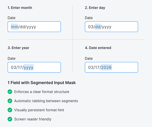 A new and better way to design date fields is to use a segmented input mask.