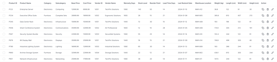 This is a massive 19-column table that's too wide to fit the viewport of desktop screens.