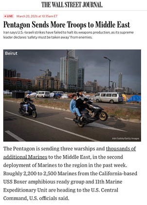 BREAKING: The Pentagon is sending three warships and thousands of additional Marines to the Middle East, in the second deployment of Marines to the region in the past week, U.S. officials tell WSJ.
