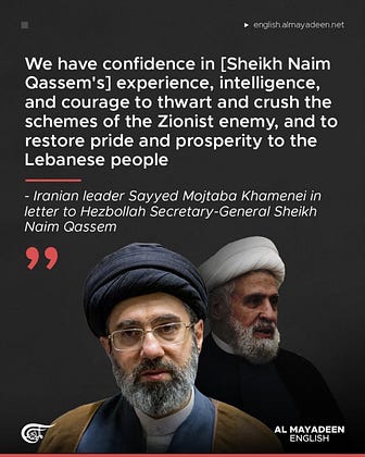 Iran’s Leader, Sayyed Mojtaba Khamenei, has sent a formal letter to Hezbollah Secretary-General Naim Qassem, expressing appreciation for condolences following the martyrdom of Sayyed Ali Khamenei.