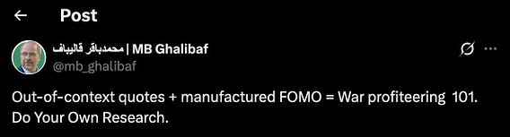 Out-of-context quotes + manufactured FOMO = War profiteering 101.