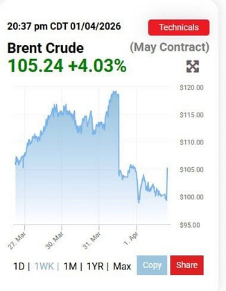 The global oil price immediately reached over $105 following the speech by the president of the United States